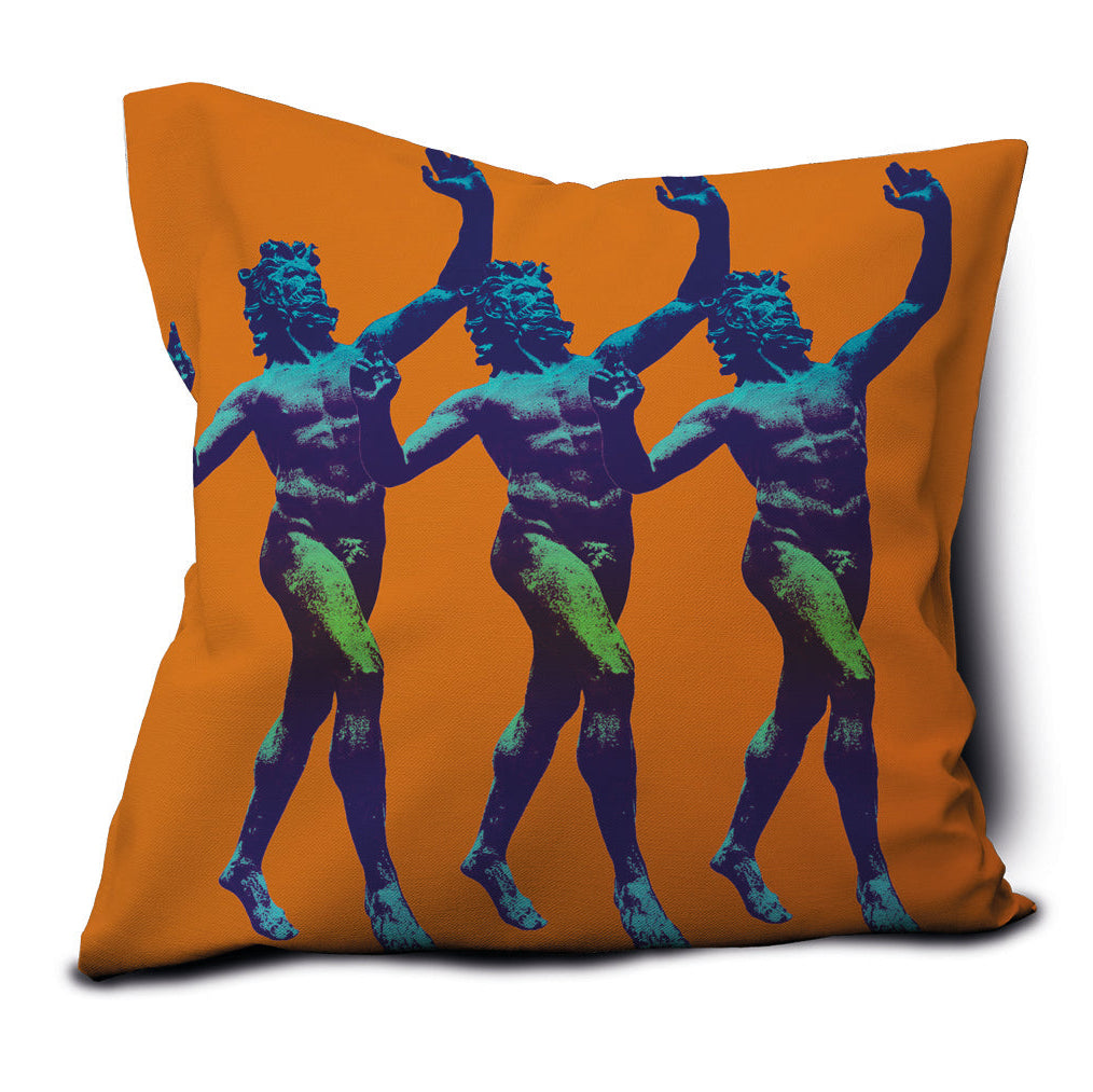 Cuscino quadrato in cotone con stampa decorativa. Riproduzione particolare statua del Fauno