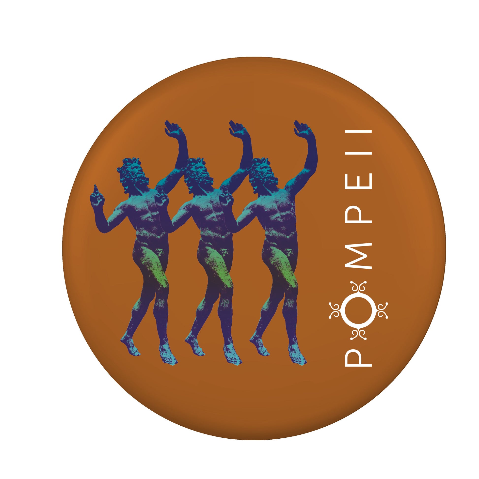 Spilla circolare in alluminio con motivo decorativo con riproduzione della statua del Fauno
